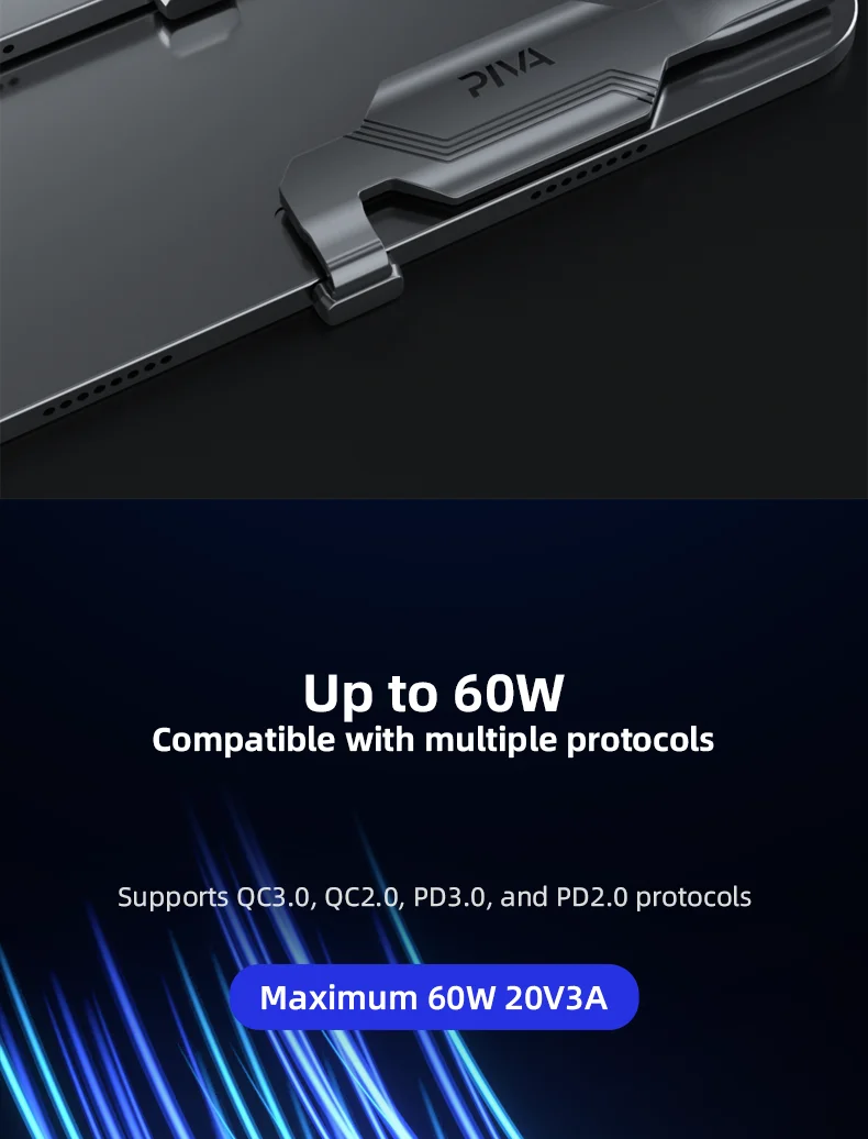 تدعم الشحن بقوة 60 واط، مما يسمح لك بشحن أجهزتك بسرعة وكفاءة.