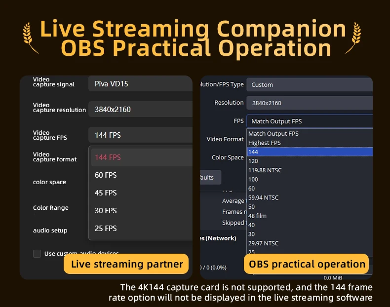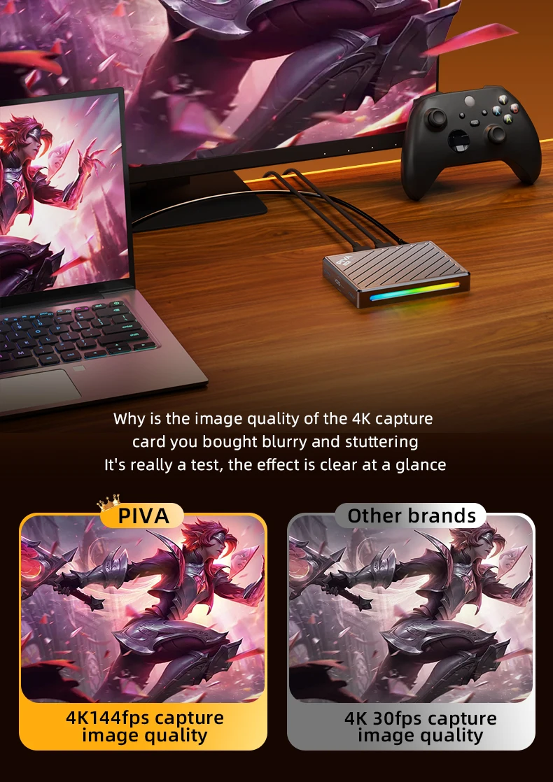 قطعة PIVA 5in1 صممت خصيصًا لنقل الصوت والصورة بجودة 4K144Hz بدون ضغط، مع دعم حتى 240FPS، وتوافق كامل مع OBS.