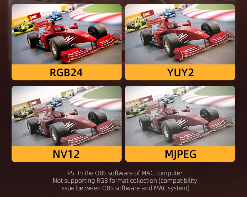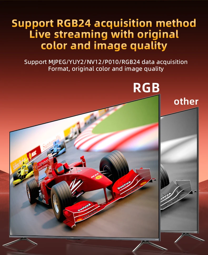دعم لتنسيقات مثل MJPEG/YUY2/NV12/P010 مع عرض فائق الدقة بألوان حقيقية وواضحة.