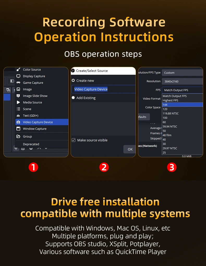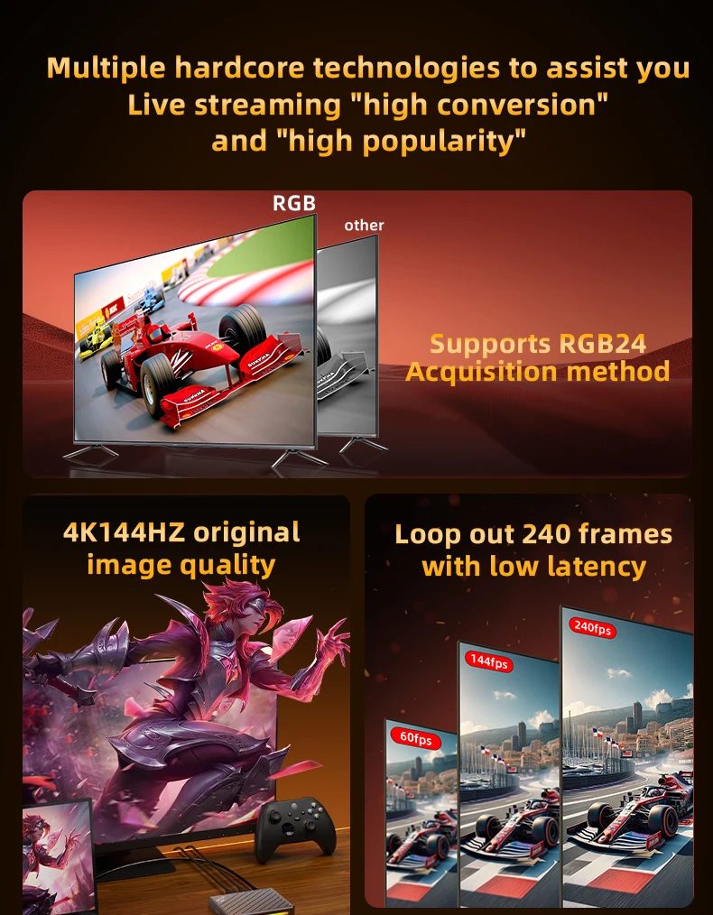 يدعم إعدادات فيديو بدقة 3840×2160 ومعدل إطارات 144FPS، ويعمل بكفاءة دون الحاجة لتعريفات معقدة.