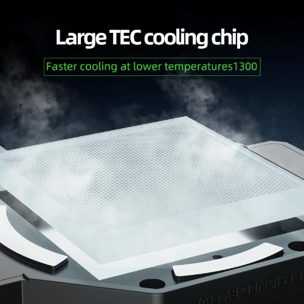 تم تجهيز المروحة بشريحة تبريد TEC، وهي تقنية متقدمة تعمل على تحسين أداء التبريد وتقليل درجة حرارة الجهاز بشكل فعال.