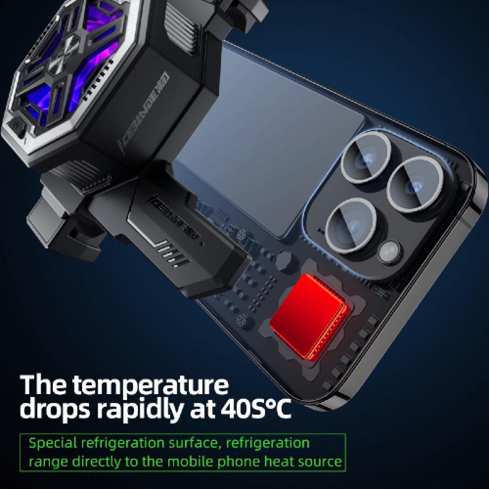 عندما يصل جهازك إلى درجة حرارة 40 درجة، ستعمل المروحة على تبريده بسرعة عالية وفي وقت قصير ، هذا يضمن أن تبقى درجة حرارة جوالك في حدود آمنة وتحافظ على أداء الجهاز الأمثل.