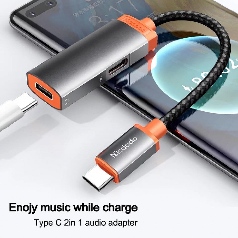 وصلة تايب سي الى منفذين تايب سي للشحن و للسماعة | Mcdodo