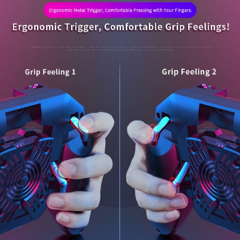 المنتج عبارة عن يد تحكم للجوال مدمج فيها 4 ازرار تخصصهم على كيفك و ايضا مدمج فيها مروحة تبريد تبرّد جوالك ونت تلعب.